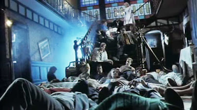 Pero la plaga se va propagando inevitablemente y el comedor de la casa se va llenando de cada vez mas zombies, entre los que hay una enfermera descabezada, y un cura karateka rubio que murió en un cementerio peleando contra los muertos vivientes.